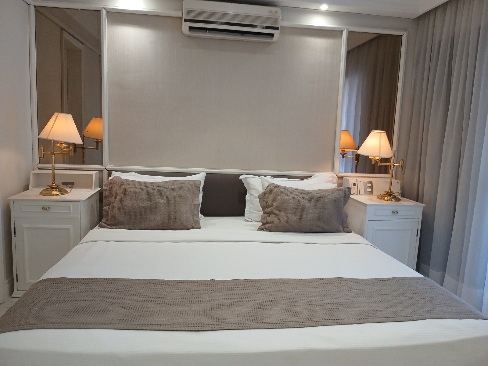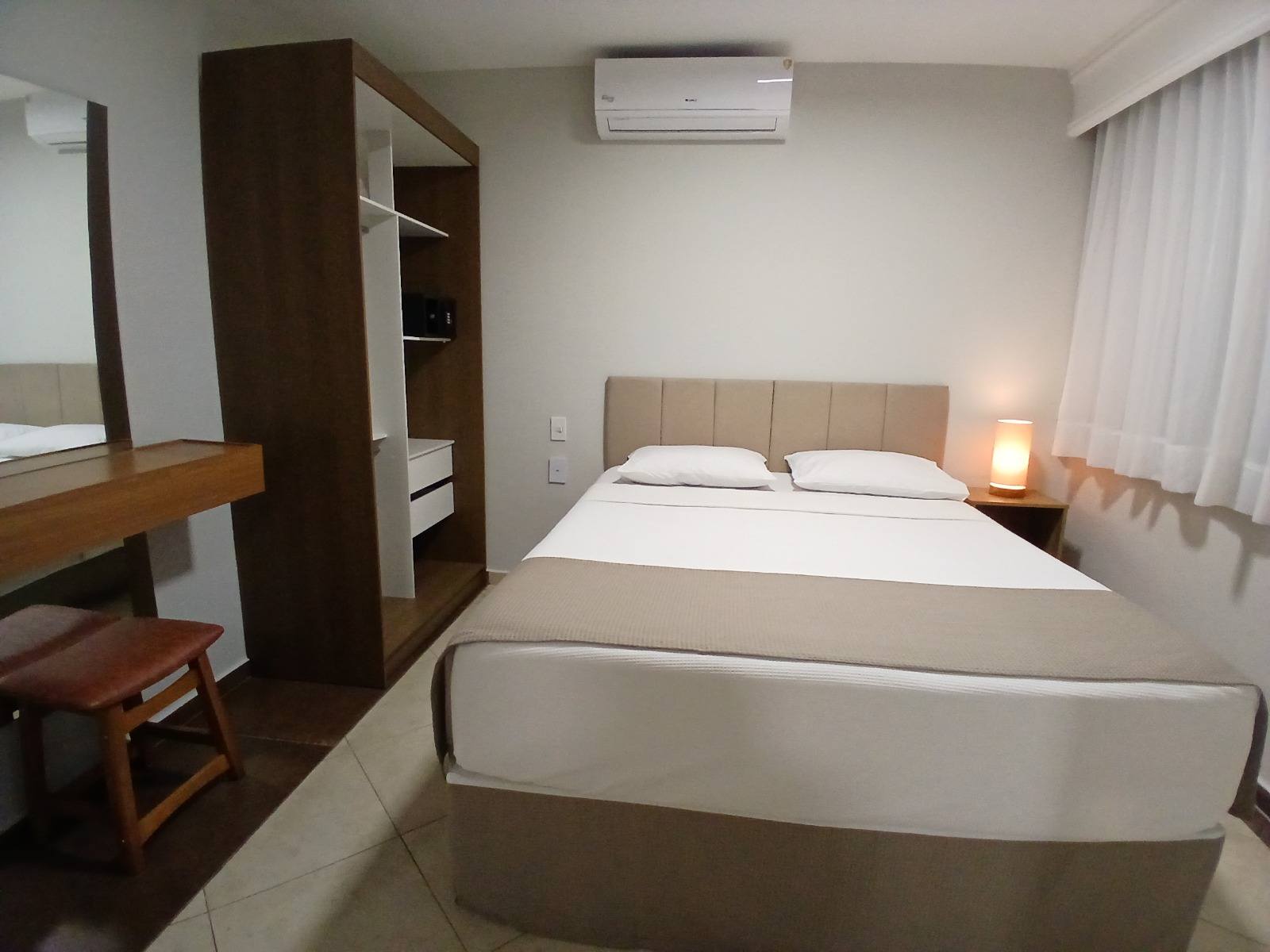 Localizados entre o 2º e 5º andar, com aproximadamente 40m², possui 1 cama de casal, piso frio, Smart Tv a cabo de 43' polegadas, sala com mesa de trabalho / jantar, 2 cadeiras, Ar condicionado Split, cofre eletrônico, cozinha estilo americana com mini frigobar, fogão 02 bocas e Micro-ondas, e banheiro.